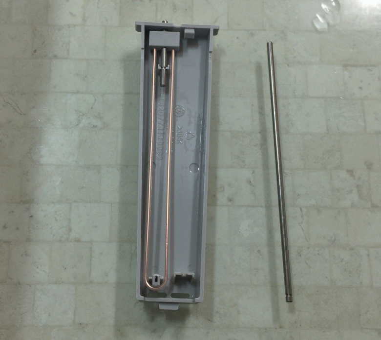 1. 수조 내의 수위센서와 관련된 에러로 아래 <사진1>과 같은 부품의 오염 혹은 센서부 접촉 불량에 의함이다. 센서의 작동원리는 명확하진 않으나 물이 다음으로서 발생하는 저항값의 변화를 인식하는 것으로 보인다.